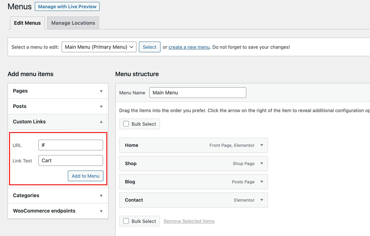 Step 1: Open the Menu and add the custom link as shown in the below screenshot
